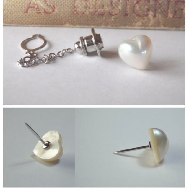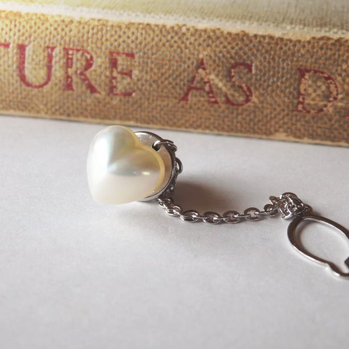 希少価値の高い、ホワイトのハート型マベ真珠タイタック。